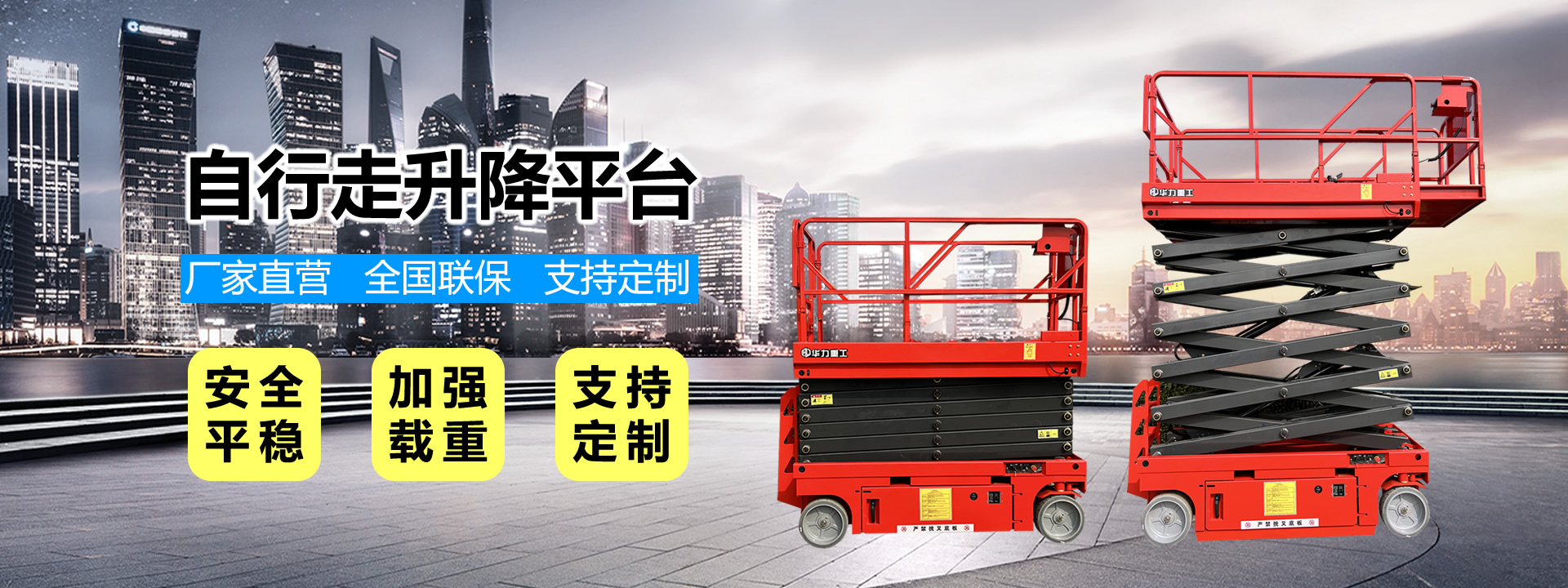 山東華力重工機械有限公司是一家從事升降機制造、銷售、售后于一體的綜合性公司,公司主要制造銷售:牽引式升降機、自行走升降機、三輪式升降機、鋁合金單柱升降機、鋁合金雙柱升降機、曲臂式升降機等相關產品及配件。目前公司已經服務于國內中鐵、華能、華電等多家國企并與加拿大、印度、馬來西亞、新加坡、緬甸等10余個國家建立了長期合作關系。我們始終堅持以人為本、誠實守信的經營原則,以質量求生存,以服務求發展,歡迎社會各界朋友洽談合作。